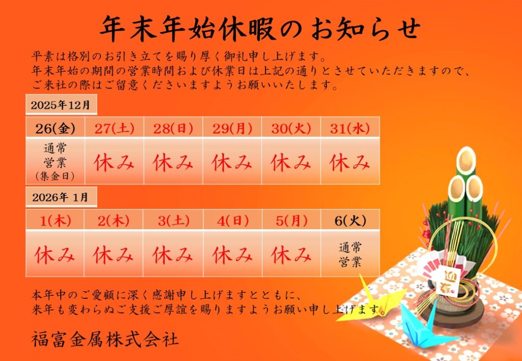 年末年始休暇をお知らせします